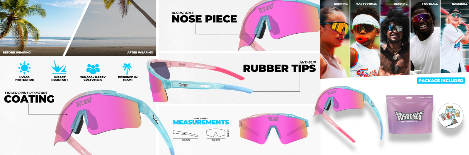 Lehké, odolné a stvořené pro hraní. Performance sluneční brýle Candy jsou stvořeny pro dny plné akce, divokou fantazii a neustálou energii. Díky flexibilním obroučkám TR90 a měkkým silikonovým vycpávkám jsou navrženy tak, aby během sportu zůstaly na místě a zmizely v zóně – a zároveň odváděly pozornost od hřiště.