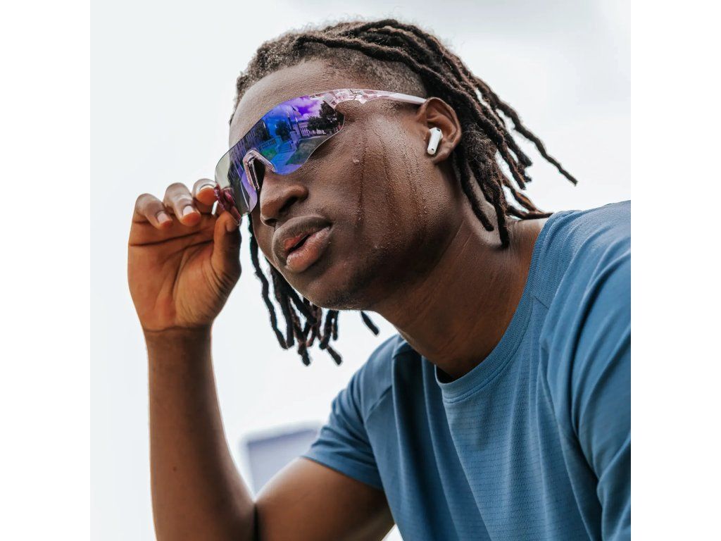 Běžecké sluneční brýle EDGE Royal jsou určeny pro sportovce, kteří trénují intenzivně a cílevědomě. Fialové zrcadlové čočky snižují odlesky a zlepšují vizuální kontrast za jasného světla, čímž podporují soustředění při rychlém pohybu a delším tréninku venku.