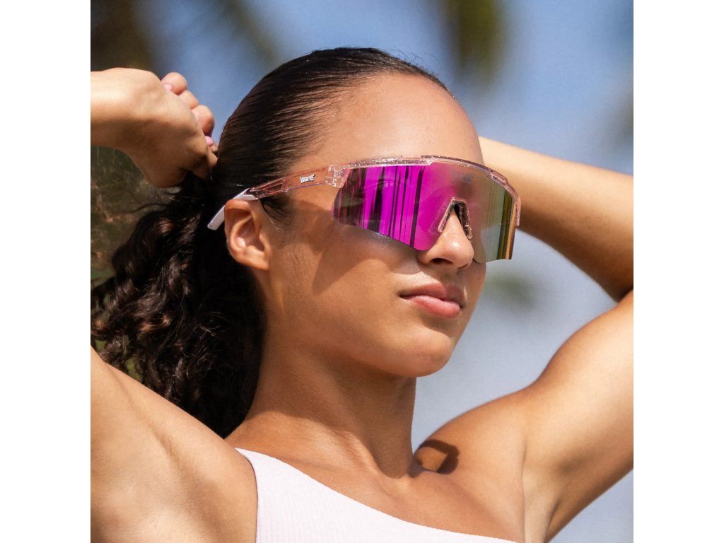 Ladnost a síla v dokonalé symetrii. Sluneční brýle Venus spojují eleganci a atletickou sílu díky jemně růžovému rámu TR90 a odpovídajícím růžovým sklům s ochranou UV400 a průhledností odolnou proti poškrábání.